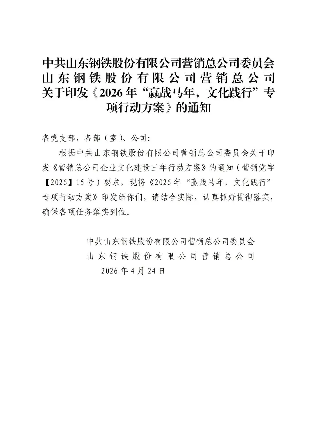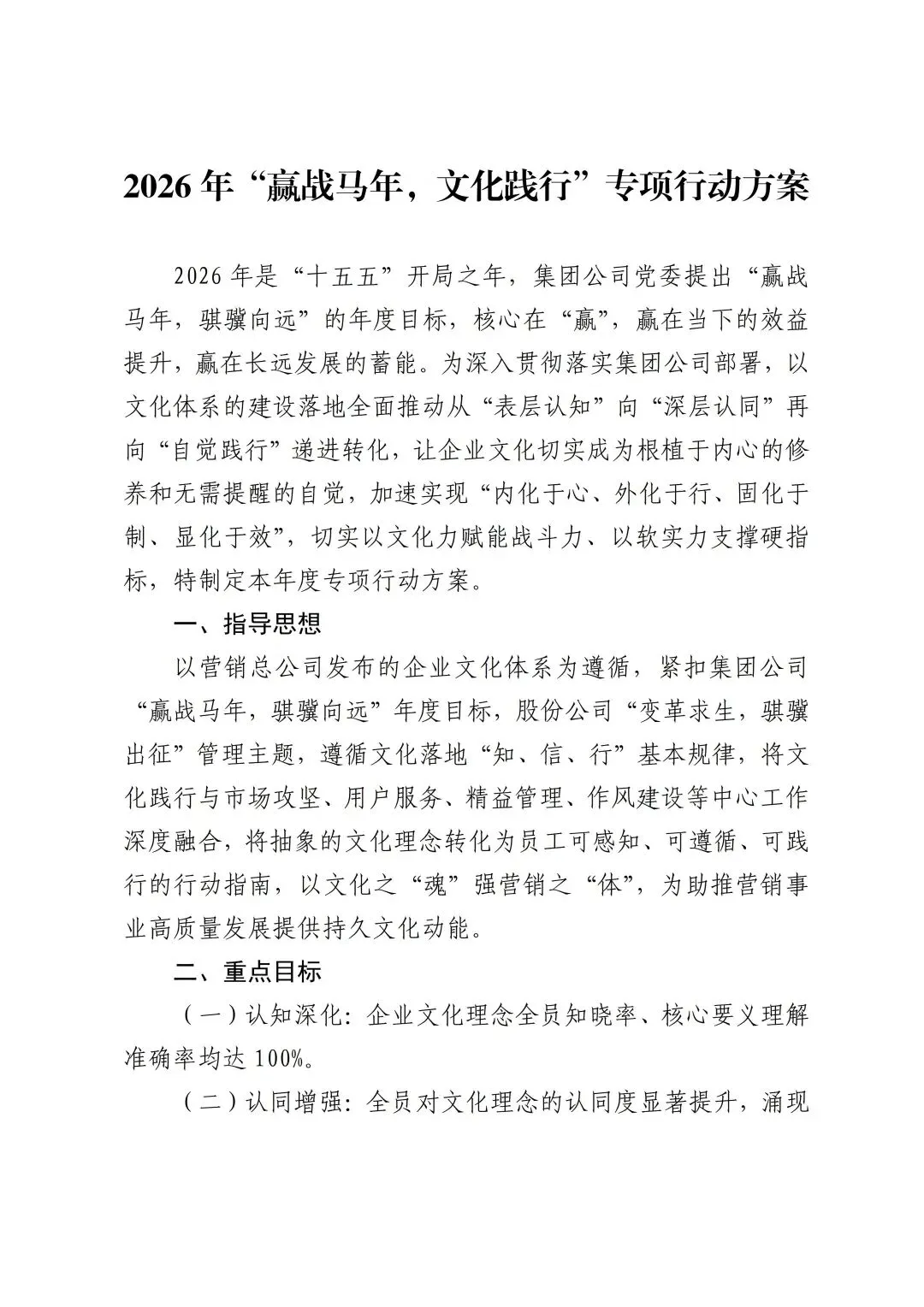 我很赞同!2026年,作为咱们企业文化建设三年行动方案中的“强基础之年”,总公司还专门下发了《2026年“赢战马年,文化践行”专项行动方案》,一起去看看吧!