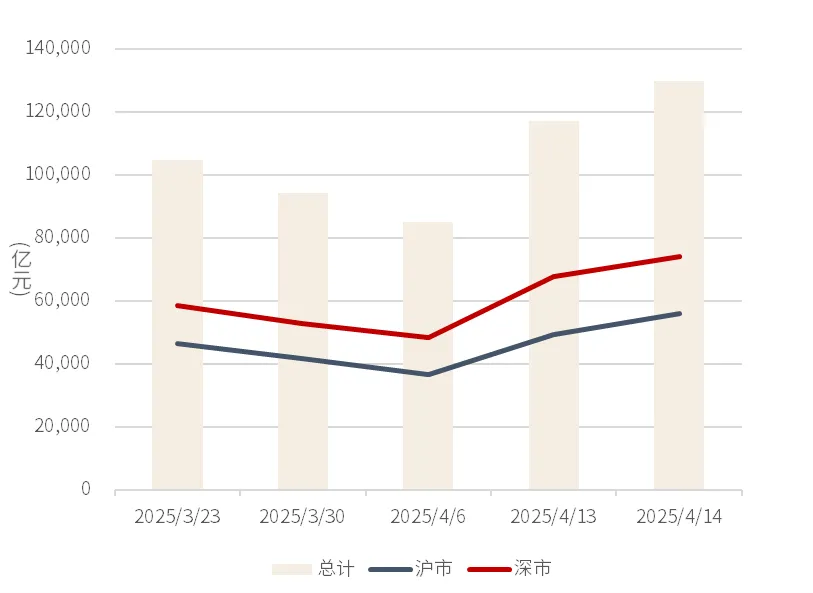 上周,沪深两市累计成交额分别为 55,881.11 亿元、 74,041.27亿元,较前值分别上涨+13.21%、+9.22%,总计 129,922.38亿元。