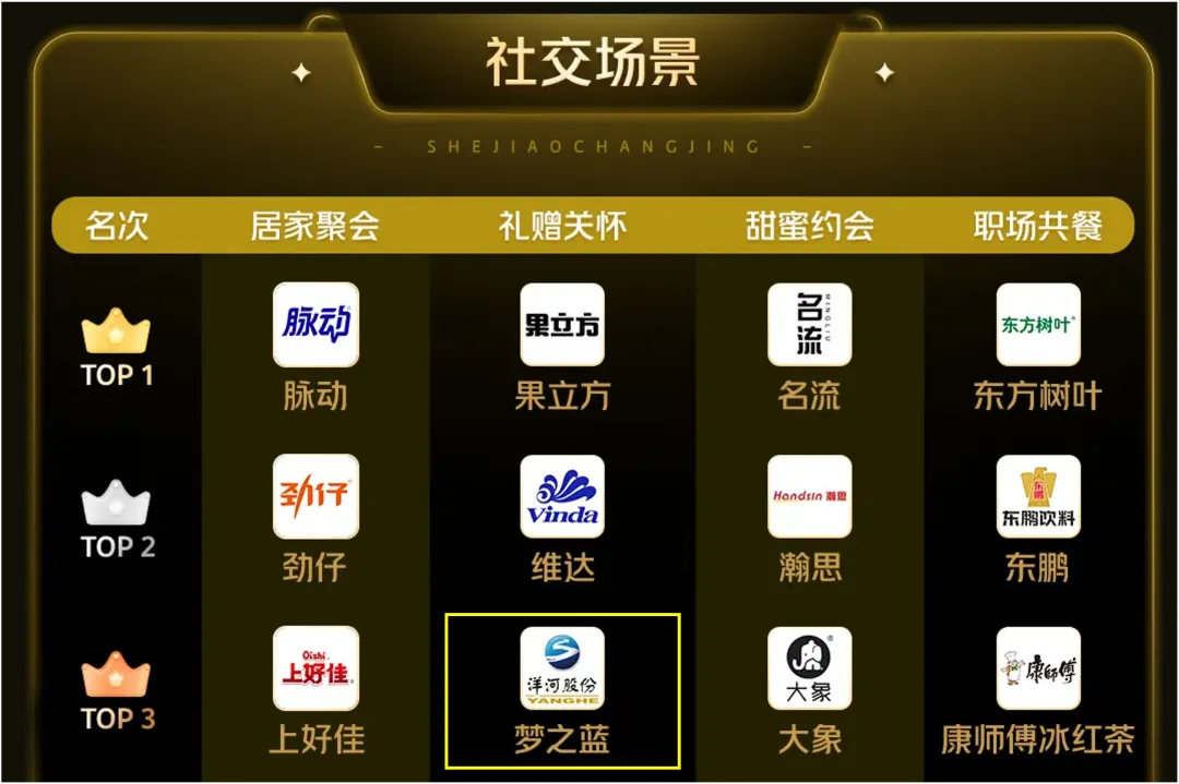 比如,礼赠绕不开高端白酒,但品牌要如何成为场景中的优先选择呢?拿下人气增长榜-礼赠关怀场景 TOP3 的梦之蓝走了一条全域串联的路。