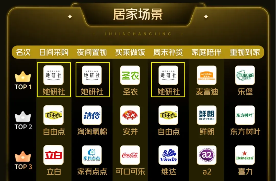 在拆解榜单时,我们发现这些品牌的共同点,是找到了属于自己的场景坐标,并围绕这个场景重构了产品、内容和履约。