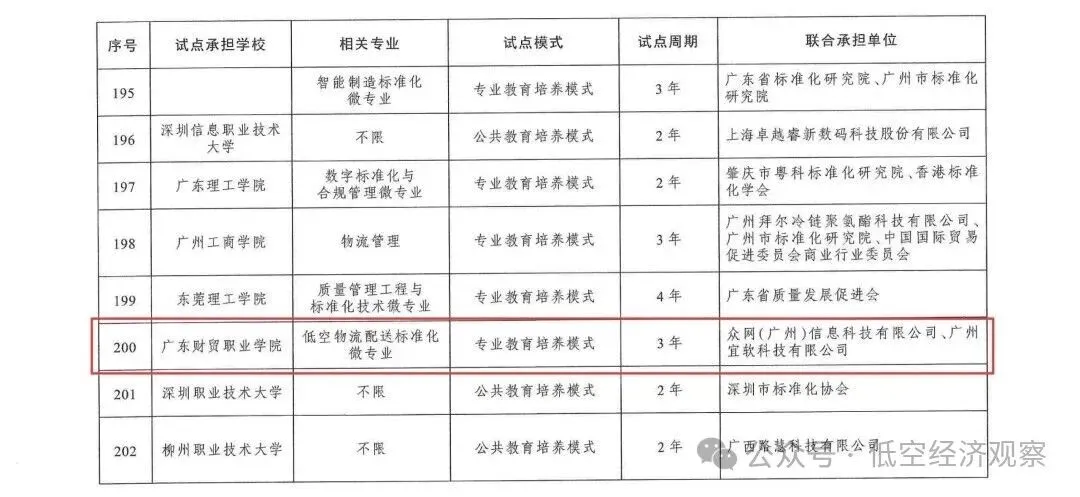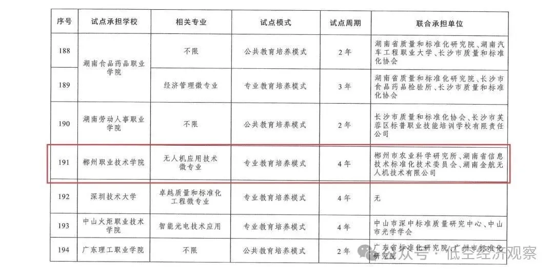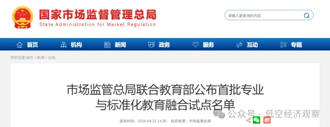 动态丨低空经济领域4个项目入选市场监管总局联合教育部公布首批专业与标准化教育融合试点名单
