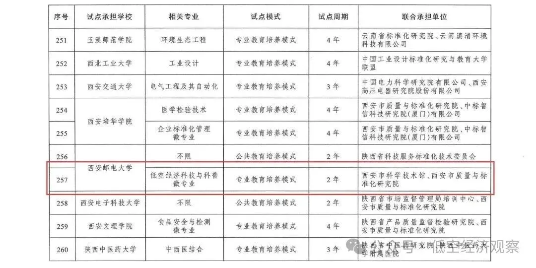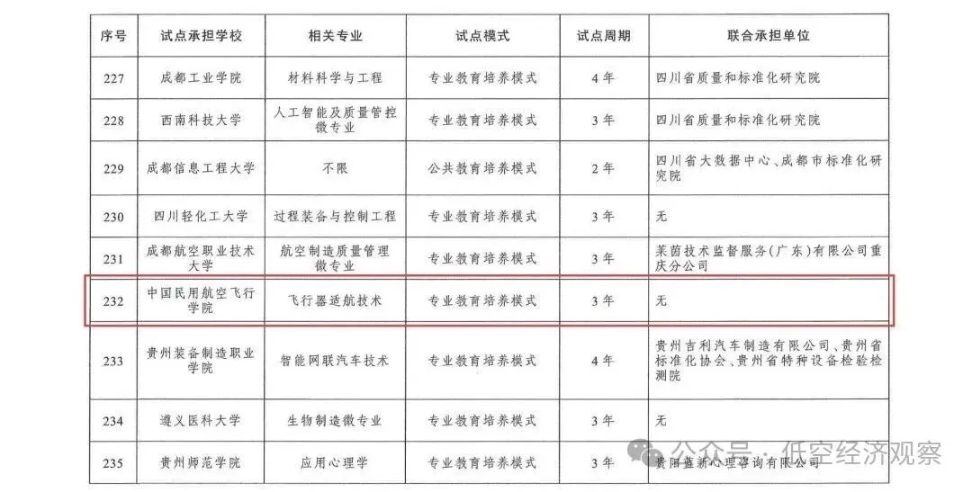 下一步,市场监管总局将会同教育部不断扩大标准化教育覆盖面,持续完善人才培养体系,推进科技创新与标准研制“双通型”人才队伍建设,为标准引领高质量发展筑牢人才根基。「低空经济观察」将试点院校单位信息分享如下。
