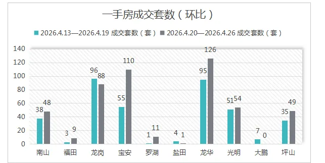 盐田、坪山、光明、大鹏四区成交量均低于60套,大鹏仅6套,区域分化显著。