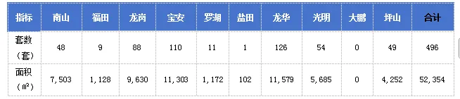 南山区成交48套,面积7,503㎡;光明区成交54套,面积5,685㎡;坪山区成交49套,面积4,252㎡;三区表现中等,合计贡献约30%成交量。