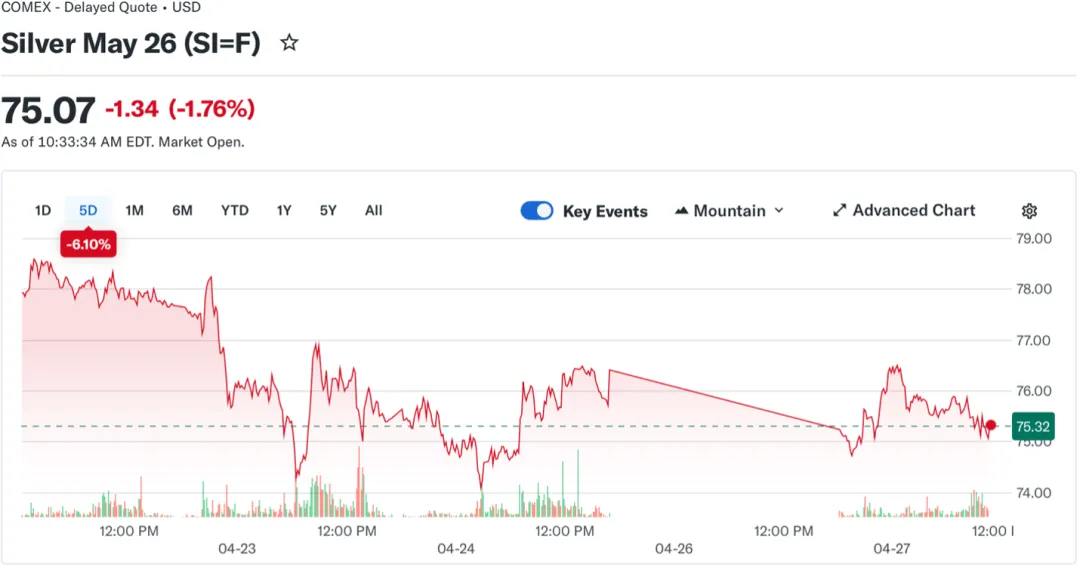 上周贵金属市场整体呈现冲高回落走势。黄金方面,价格大致运行在约4,700–4,760美元/盎司区间,但周度下跌约2.5%–3%,结束此前连续上涨趋势;白银波动更大,运行在约75–80美元/盎司区间,周内下跌约6%–7%,跌幅明显高于黄金。