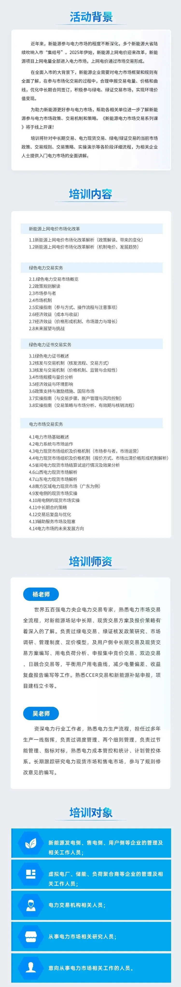 《新能源电力市场交易系列课》 重磅上线!覆盖中长期/现货/绿证全场景,手把手教你从政策到实操,成为企业急需的复合型人才!