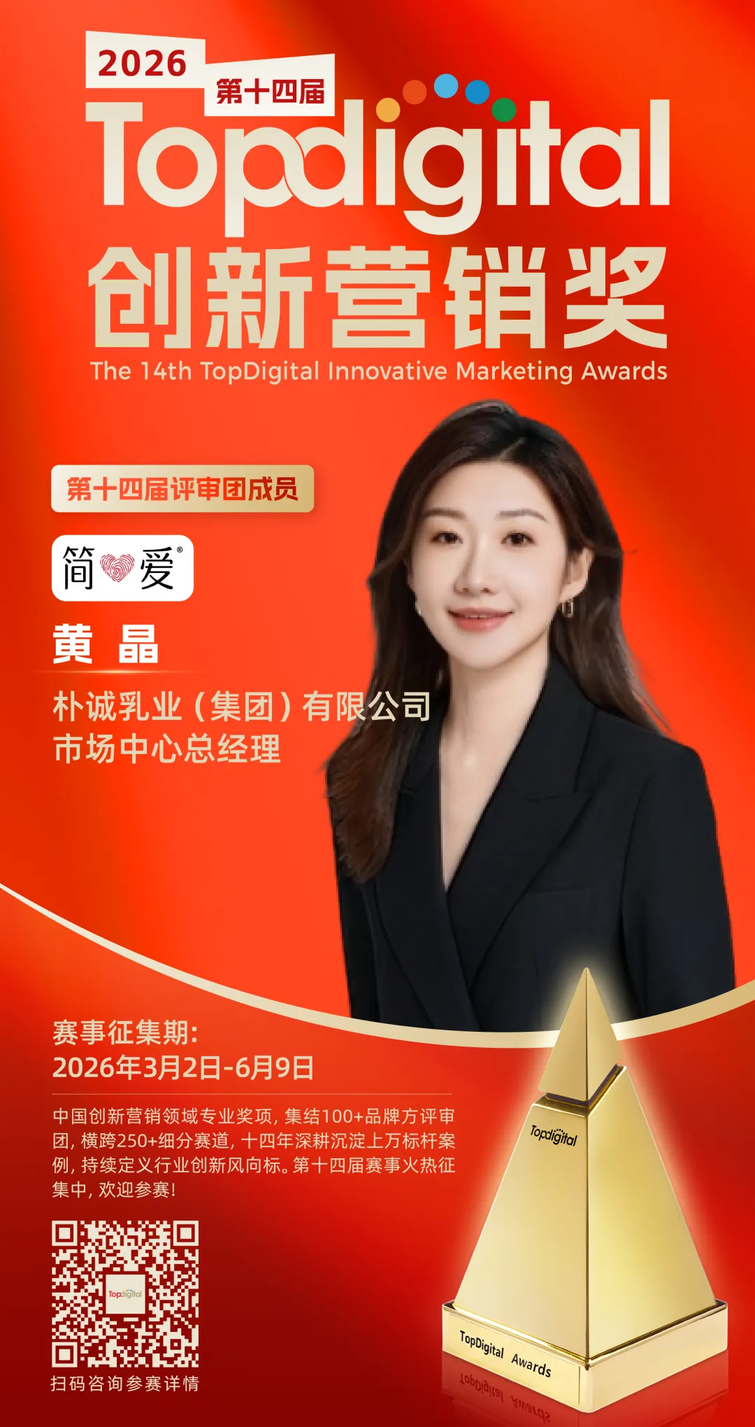朴诚乳业(集团)有限公司市场中心总经理黄晶担任2026TopDigital评委 | TopDigital 2026评委说