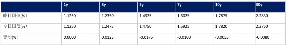 国债方面 1.83Y 250005 1.215; 3.75Y 250003 1.39-1.40;5.91Y 250007 1.5525-1.56; 9.33Y 250016 1.778-1.7825; 29.33Y 2500006 2.266-2.278。