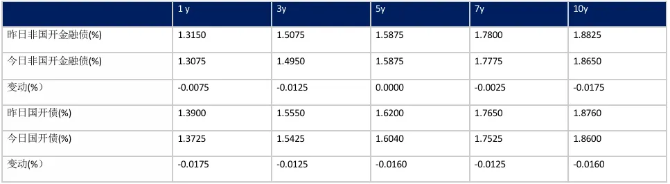 金融债方面 266D 260401 1.36-1.37; 2.82Y 240203 1.506-1. 52; 5.72Y 220205 1.70-1.705; 9.14Y 250215 1.855-1.87。