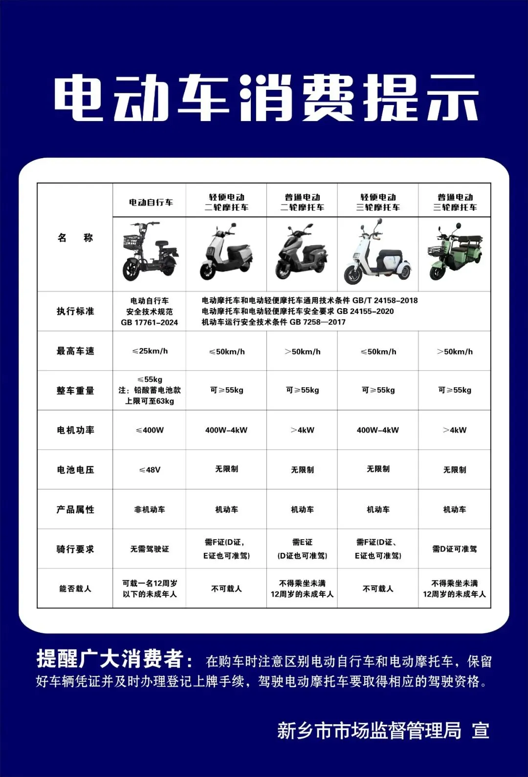 一图读懂 | 新乡市市场监督管理局教你区别电动自行车与电动二、三轮摩托车