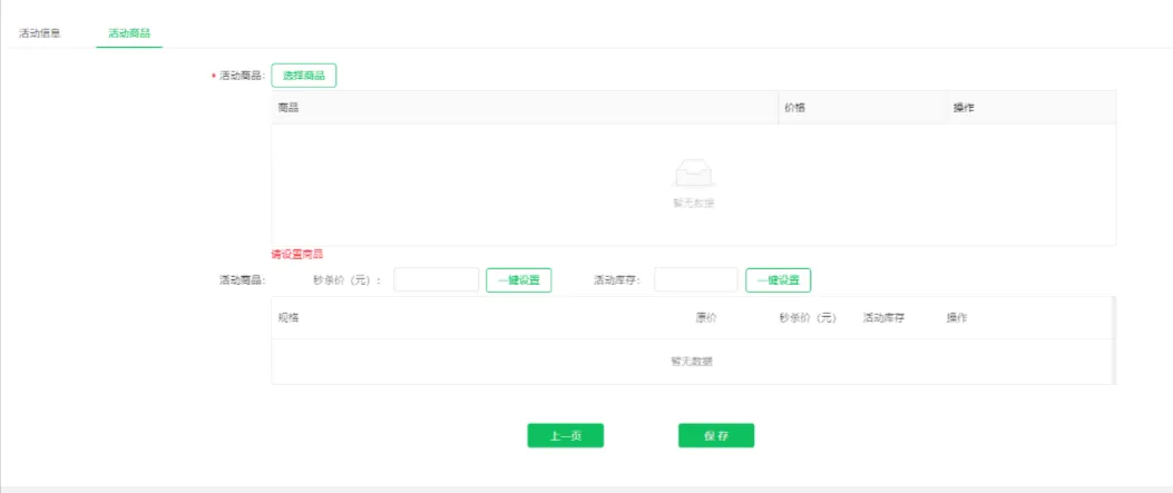 求,可以一键批量设置库存和秒杀价格,省时省力。