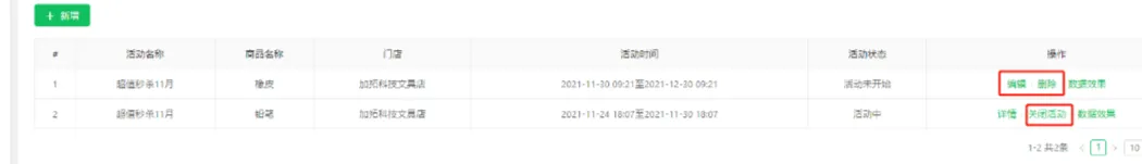 创建好的活动会出现在秒杀活动列表中,你可以根据状态进行不同操作: