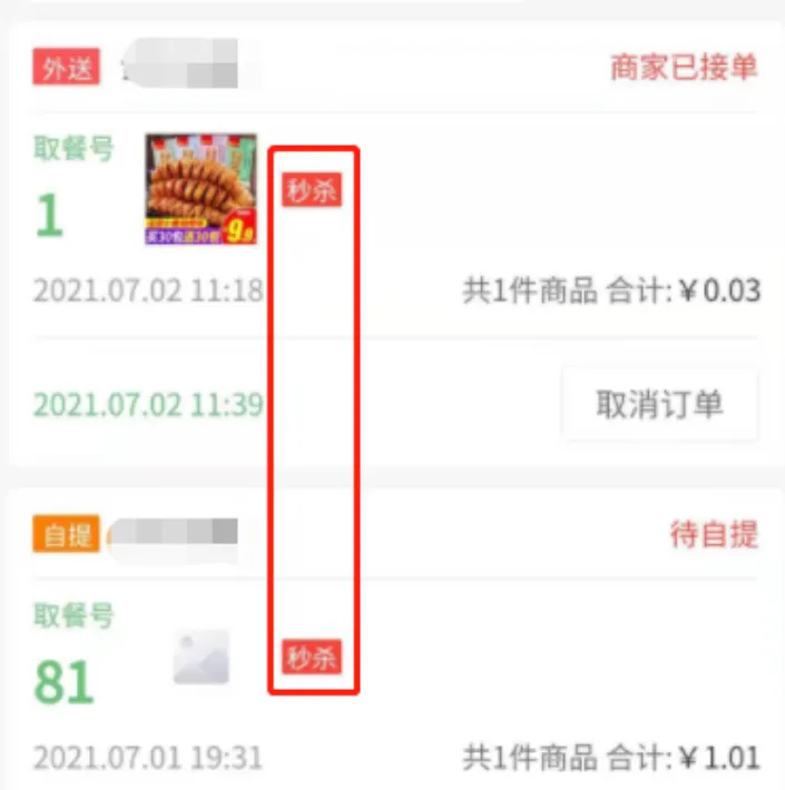 订单标识:小程序订单列表中,秒杀商品同样带有专属标识,用户和商家都能一眼识别。