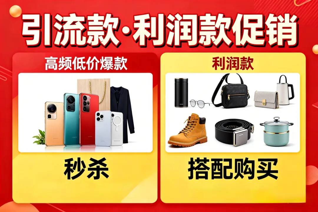 引流款:用高频、低价的爆款做秒杀,哪怕亏一点,目标是拉新。