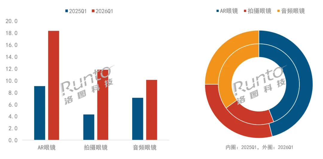 2026Q1 中国智能眼镜市场分产品类型销量规模及结构变化