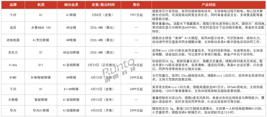 20261-4月 中国智能眼镜市场主要新品信息