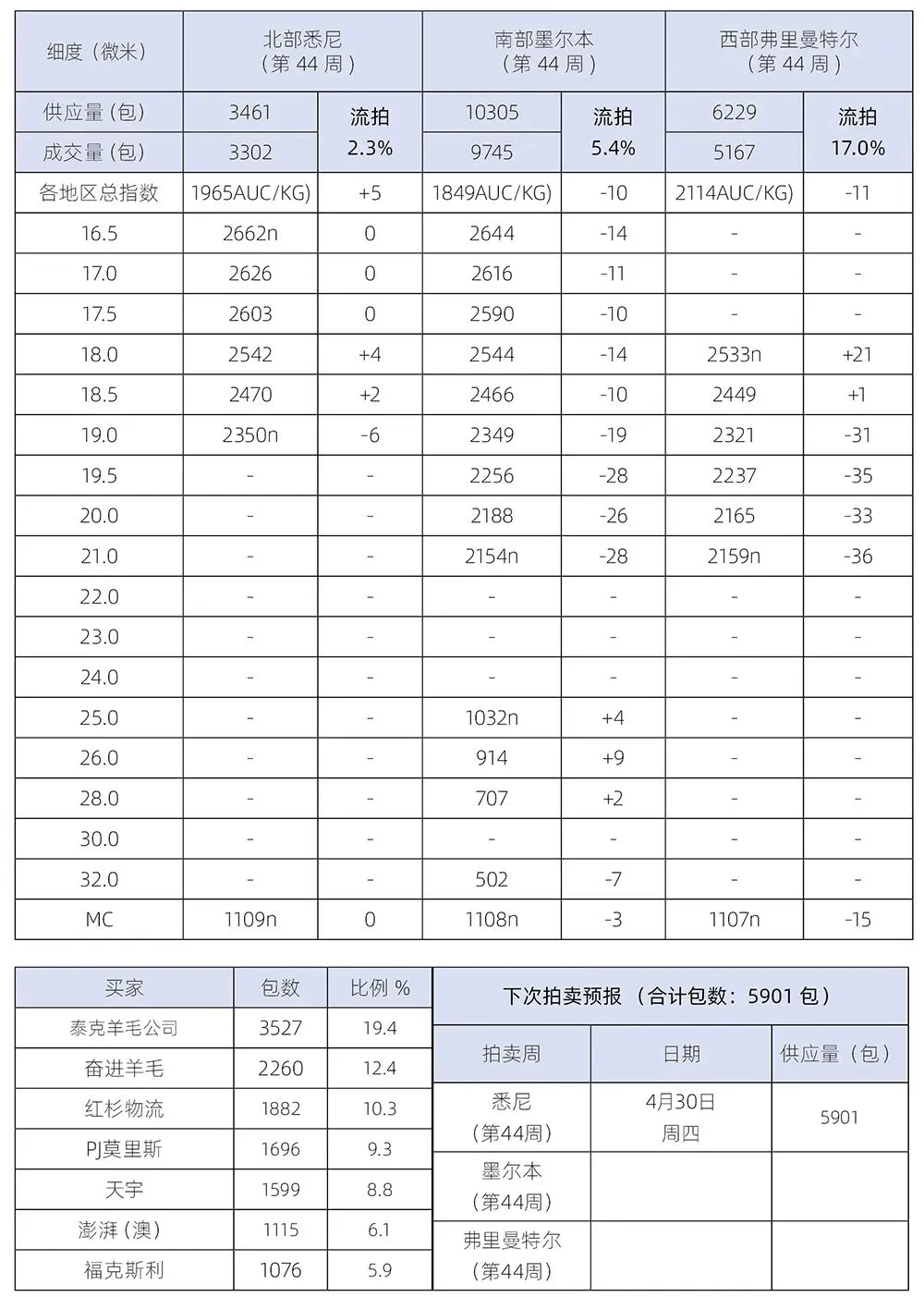 澳大利亚羊毛拍卖日报:市场略软(2026-4-29)
